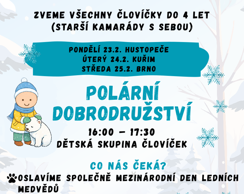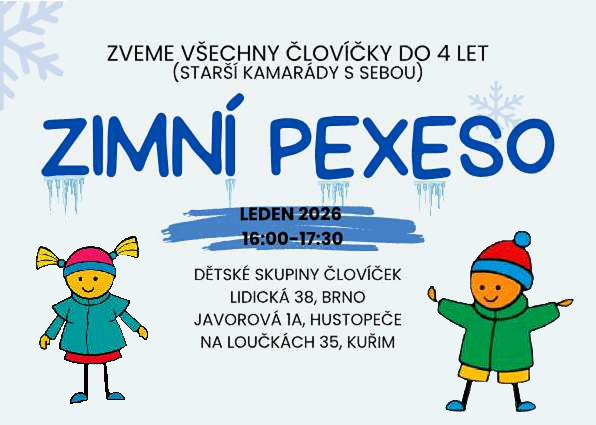 Pracujeme primárně s dětmi do 4 let, přizpůsobujeme tomu i obsahovou náplň uvedených aktivit. Starší (i mladší) sourozence na naše akce ale vezměte bez obav s sebou, určitě si zábavu také najdou.