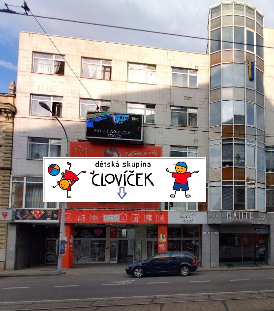 Označený vstup najdete v pasáži, školka samotná je v 1. patře.