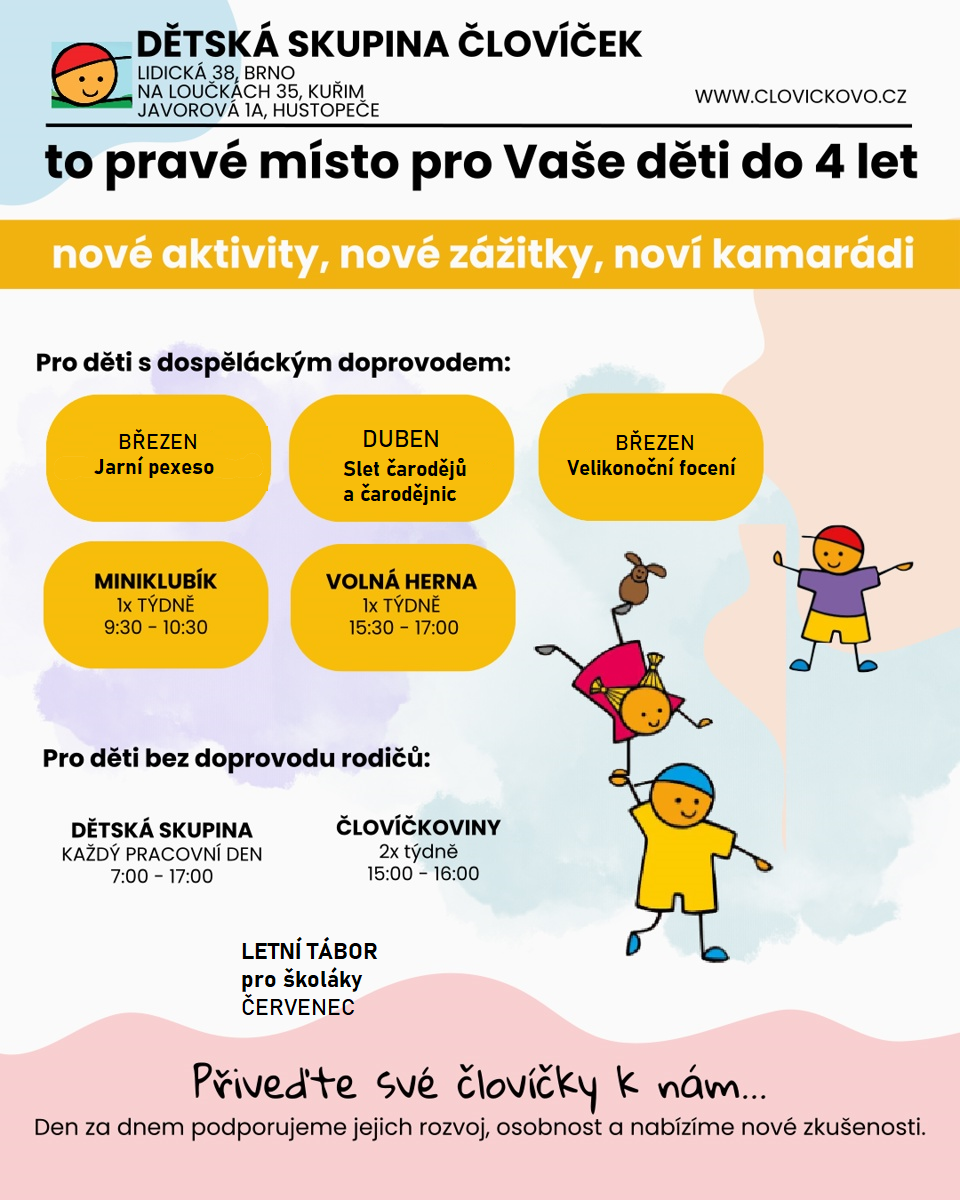 Človíčkovo pexeso, Dny otevřených dveří, Velikonoční focení, Slet čarodějů a čarodějnic, miniKlubík, předAdaptační herny ...