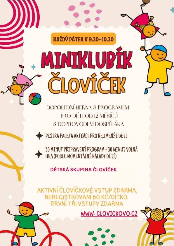 Děkujeme za Váš zájem o miniKlubík Človíček. Ozveme se na Váš email do tří pracovních dnů.