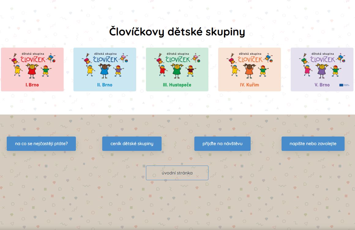 Jsme super kamarádi, máme se rádi a těšíme se na každého nového Človíčka. Stačí se domluvit s tetami na e-mailu CLOVICEK@ALFADECK.cz nebo jim zavolat na telefon 608 608 011. Přijdete k nám na návštěvu a my vám všechno rádi ukážeme. Tety zodpoví všechny vaše zvědavé otázky a než si zvyknete, můžete si k nám s sebou brát i maminku. Taky ji vezmeme do party :-) Tak se brzy ozvěte, ať už jste s námi.