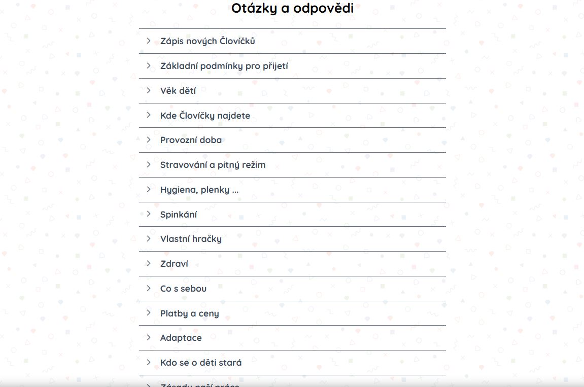 Naštěstí si to můžeme dovolit. Vždyť je nás jen šest na jednu tetu a najednou nás není víc než dvanáct. Všechny tety to s námi umí, mají na to školu a spoustu všelijakých kurzů k tomu. Řídí se totiž přísným zákonem o dětských skupinách a to není žádná legrace. Ale s námi mají velkou trpělivost, někdy řádíme i celý den.
