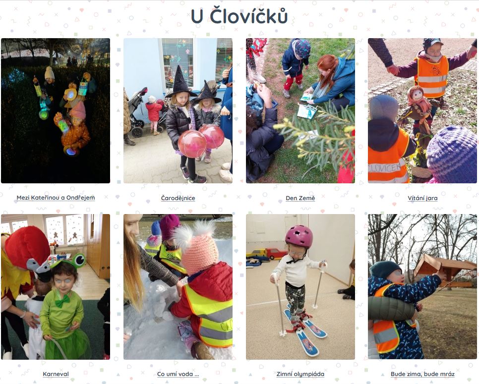 Pěkně spolu, ať jsou to závody odrážedel, vycházka za zvířátky nebo třeba výroba sněhových koulí. Naše tety se mohou spolehnout, že nikdo z nás nezůstane stranou a každý den je překvapíme něčím novým! A s těmi malými, s těmi tetám pomáháme. Však si ještě pamatujeme, jak starší kamarádi pomáhali nám. Vůbec nevadí, když má někdo plenky, když se neumí sám najíst nebo zavázat si tkaničky, všechno se to mezi námi naučí.